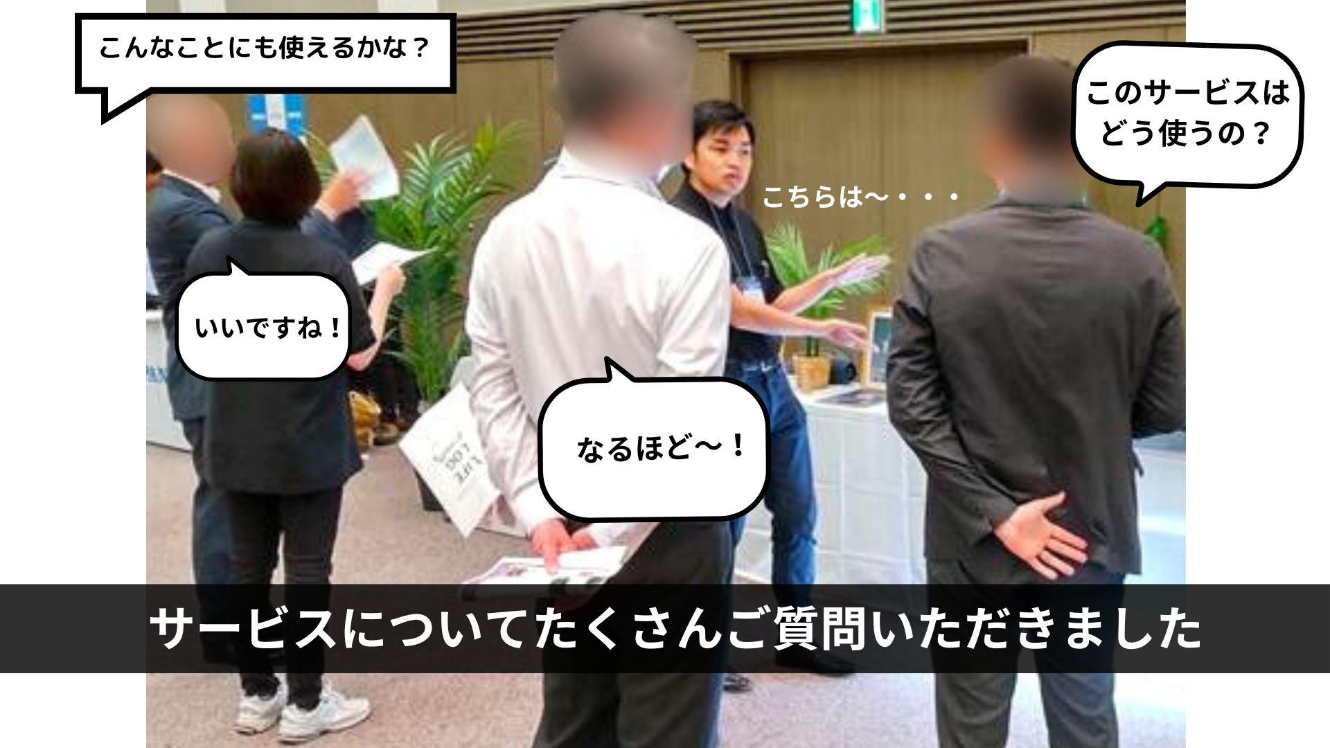 本イベントへの出展を通じて、多くの来場者様より当社サービスへの高い関心をお寄せいただき、数多くのご質問やご意見を頂戴しました。