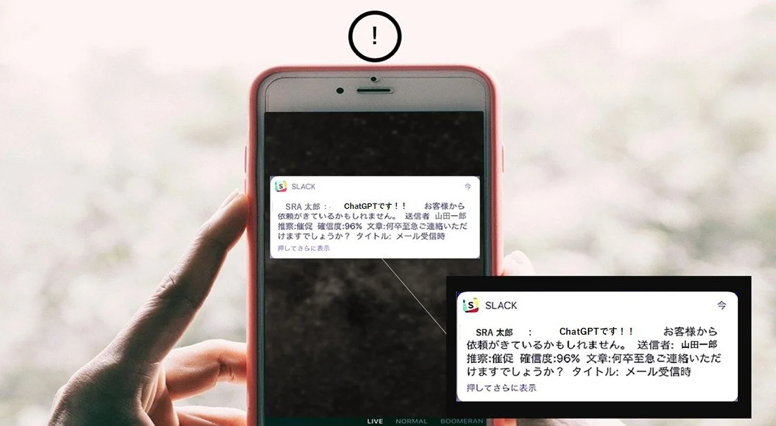 膨大な量のメールテキスト情報をChatGPTがチェックしてくれて依頼や催促といった文章を見つけると教えてくれるサービスです。