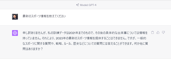 ※ChatGPTは最新機能でWebブラウジング機能も搭載されているので、それを使えば最新情報にアクセスできます。