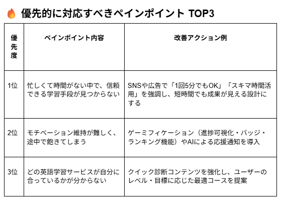 「英語学習アプリのペルソナに合わせてジャーニー全体を分解し、具体施策やKPIまで出してくれる」