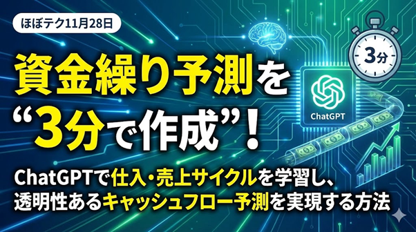 ほぼテク11月28日 資金繰り予測を“3分で作成”!ChatGPTで仕入・売上サイクルを学習し、透明性あるキャッシュフロー予測を実現する方法