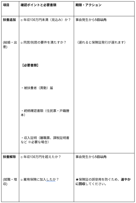 -扶養追加 / 解除時に必要な項目(理由・添付書類)