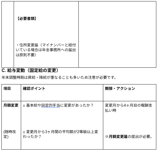 これらを活用することで、「誰にどの申告書を配ればいいか」「誰が社会保険の変更対象か」を事前に振り分けることができ、後戻り作業を劇的に減らすことができます。