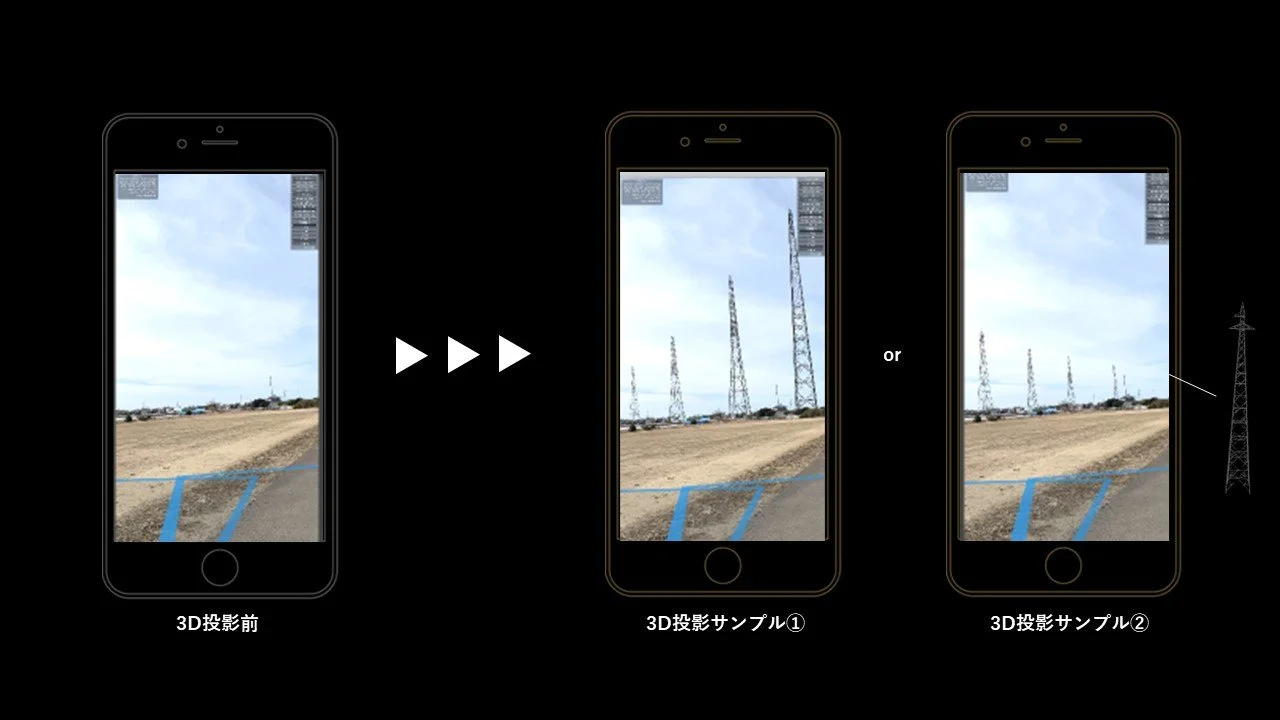 AR Displays Scheduled Large-Scale Facility Construction Images Before large-scale facility construction, it is essential to provide explanations to residents in the neighborhood. Until now, explanations were often provided on paper or in drawings, making it difficult to visualize the project. By utilizing AR technology, we are able to provide a more concrete image of the project, which will help local residents to better understand the project. This makes it easier for local residents to understand the project. Seeing the invisible in the real world.